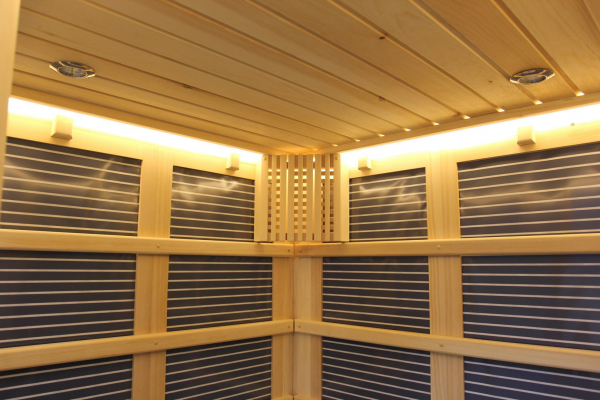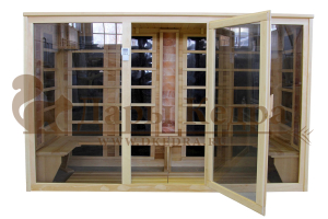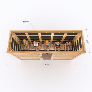 Это специально оборудованная кедровая кабина для прогрева тела человека сухим теплом. Воздух в таких парных не нагревается. Инфракрасные лучи воздействуют на тело, равномерно прогревая мышцы, суставы и органы. Карбоновые излучатели, встроенные в стены кабины, обладают мягким прогревом, что полностью исключает возможность ожога. Работает кабина за счет электричества. Пятиместная инфракрасная сауна с карбоновыми излучателями подходит для коммерции.